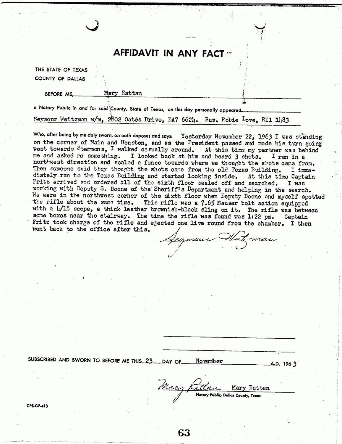 In the first discrepancy I have given you facts that can't be refuted that call Weitzman's changed account of the rifle first found into question (i.e. 7.65 vs 8mm Mauser & scope magnification). The only thing you've given me to support Weitzman's CHANGED testimony––where he couldn't even look the interviewer in the eye when asked when he first saw the rifle––is what you said about the film and the newspaper article.